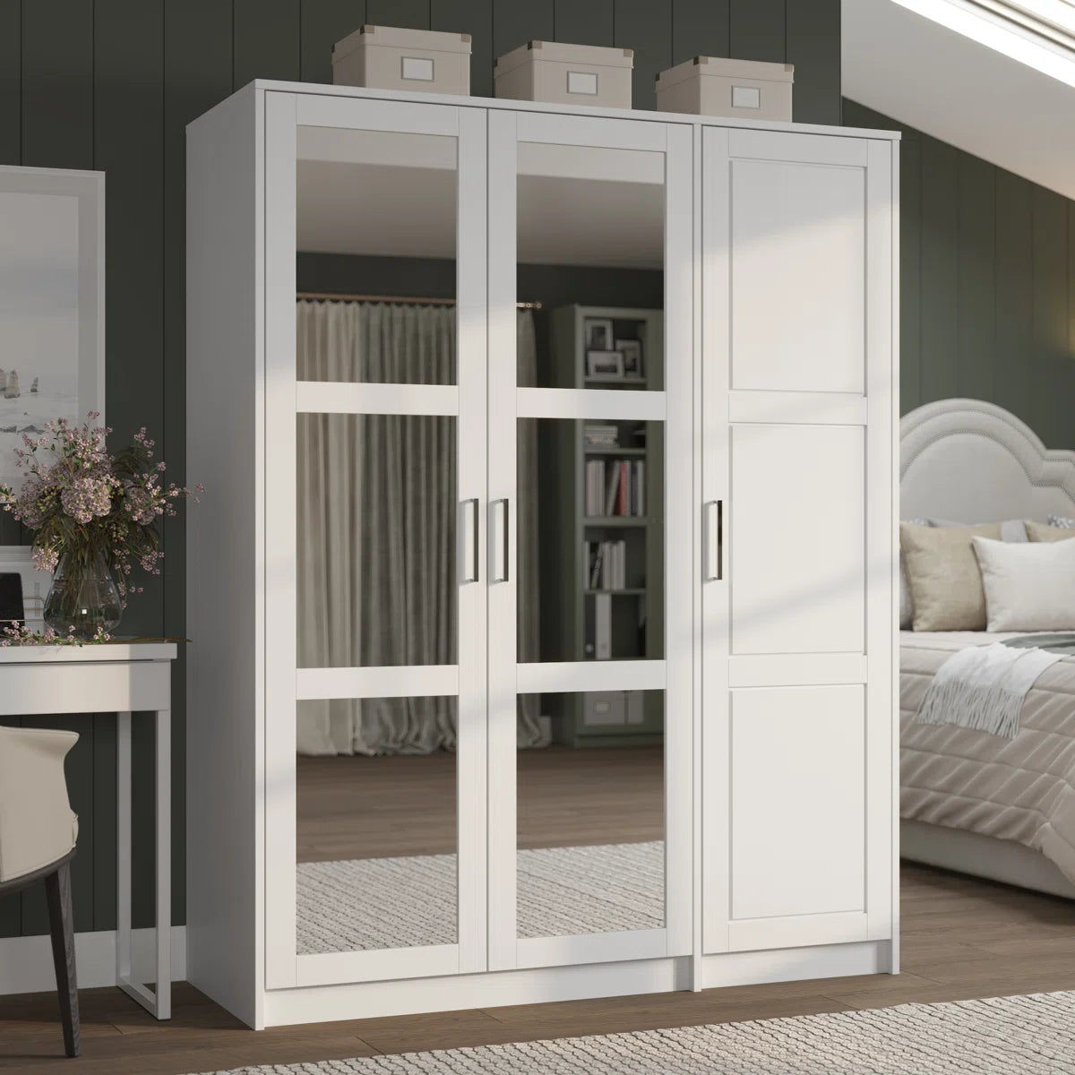 Premium 100% Solid Wood Swedesboro 3-Door Wardrobe Armoire with Mirrors