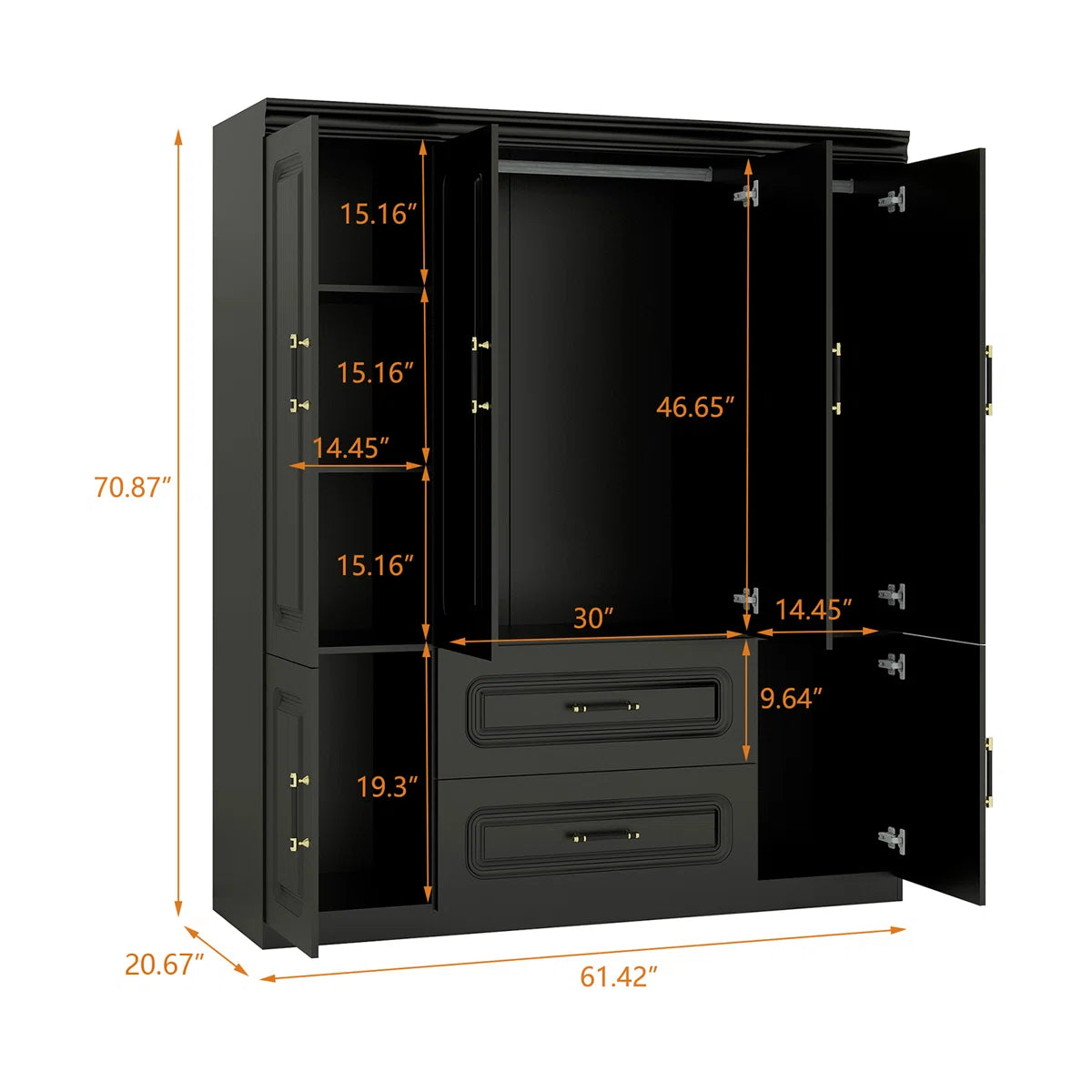 Modern 4-Door Bedroom Wardrobe Armoire With Storage Compartments