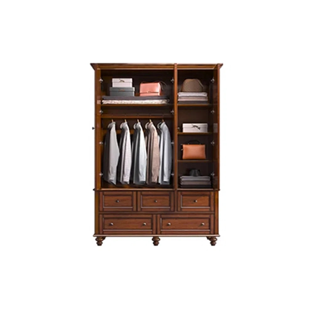 Minimalist American-Style Wardrobe – Retro Wooden Bedroom Storage Cabinet