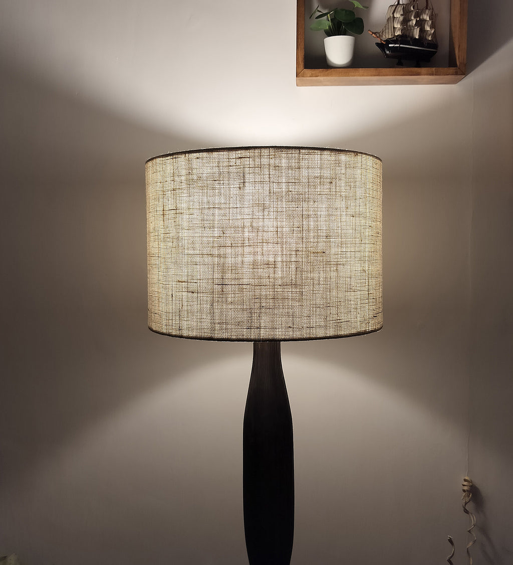 A2: The lampshade is made from jute fabric, offering a natural and rustic texture that complements the wooden base and adds a cozy, earthy touch to your room.