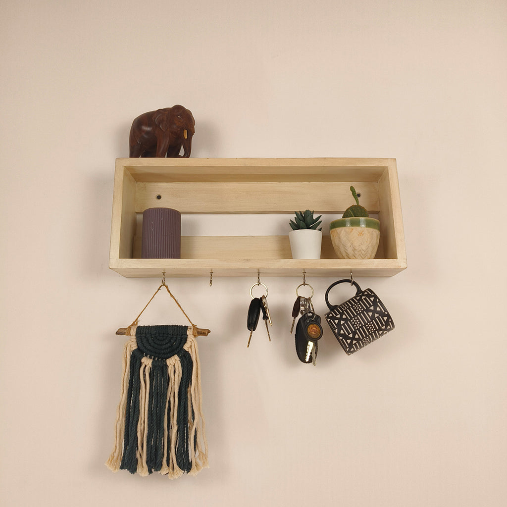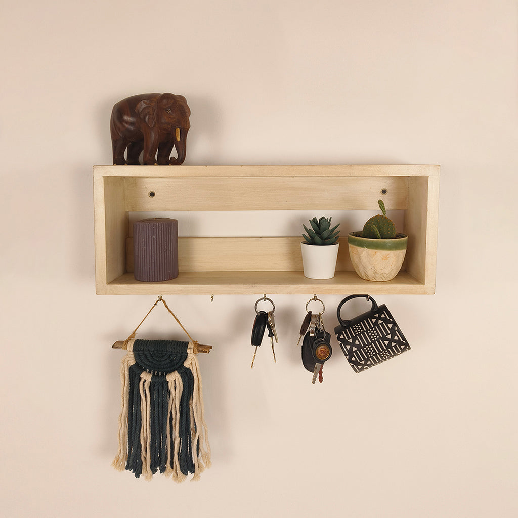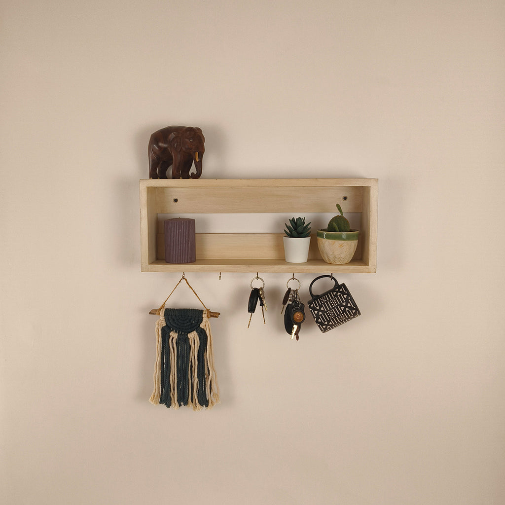 Avalon Wooden Wall Shelf Organiser with Key Holders