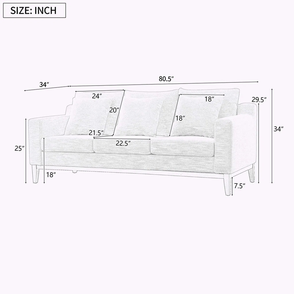 Comfort, style, and durability come together in this beautifully designed three-seater sofa—perfect for transforming your living space. Crafted with a solid wood frame and upholstered in smooth fabric, this sofa adds a contemporary touch with its clean lines and sleek tapered legs.