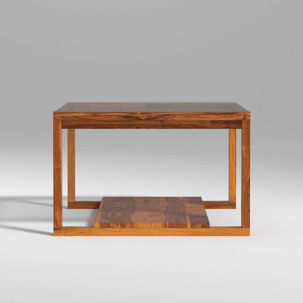 - The coffee table is crafted from premium Sheesham wood, known for its durability, rich wood grain, and timeless beauty.