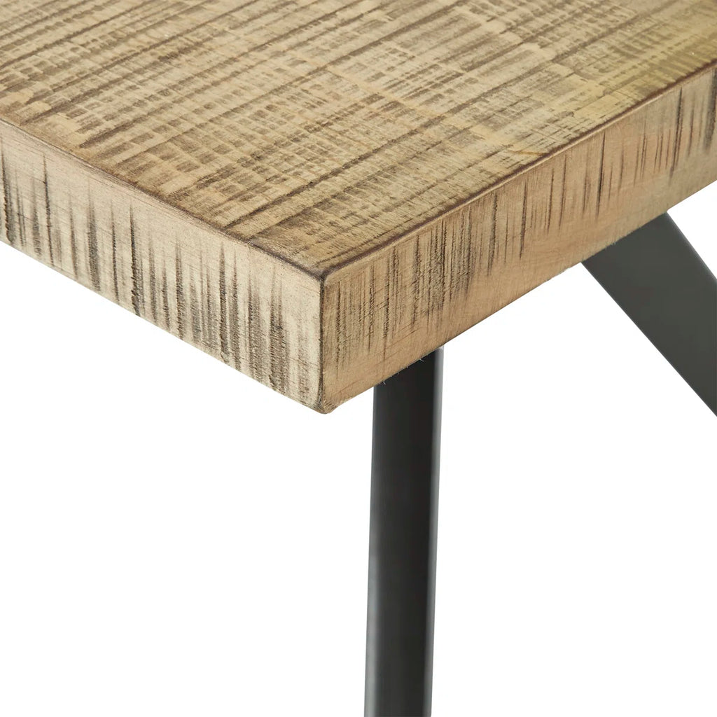 Elegant Mid-Century Modern Design: A sleek iron-gray metal base paired with a light pine wood tabletop creates a mid-century modern silhouette with a rustic touch — perfect for both casual and formal dining settings.