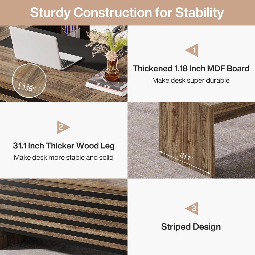Executive Office Desk with Mobile Filing Cabinet & Storage Shelves | Large Computer Workstation for Home Office