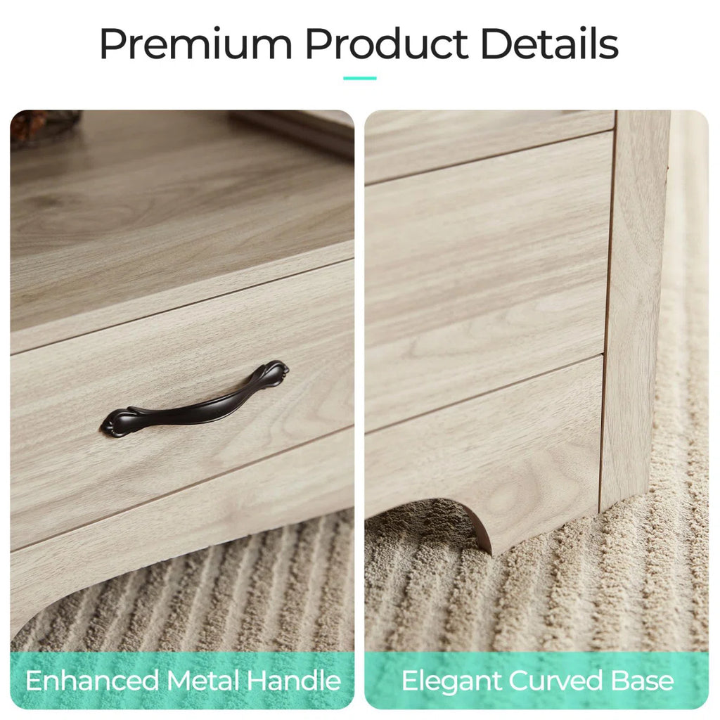 Farmhouse Coffee Table with Drawers & Open Shelf | Rustic Storage Center Table for Living Room