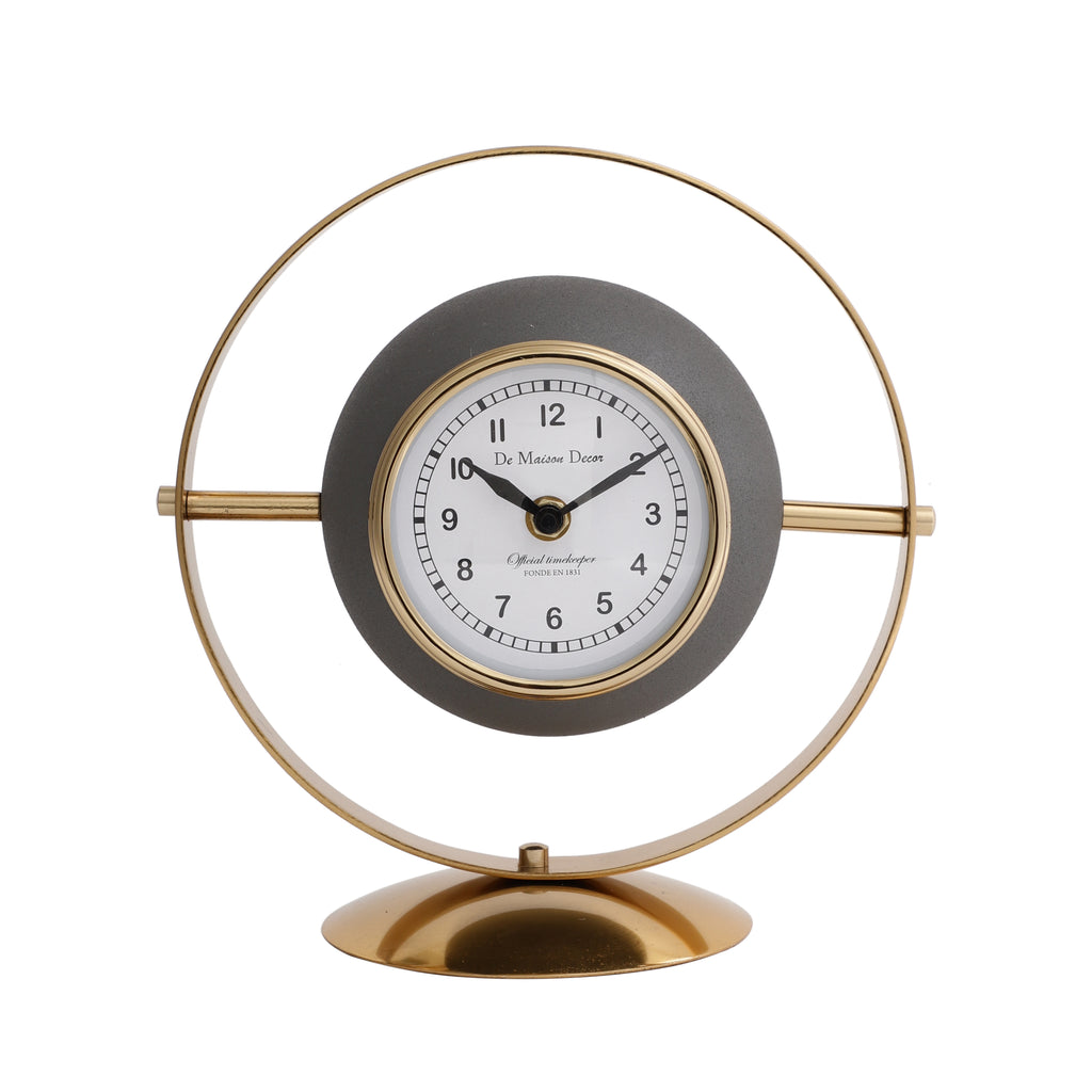 Halo Clock In Ivory Grey & Gold