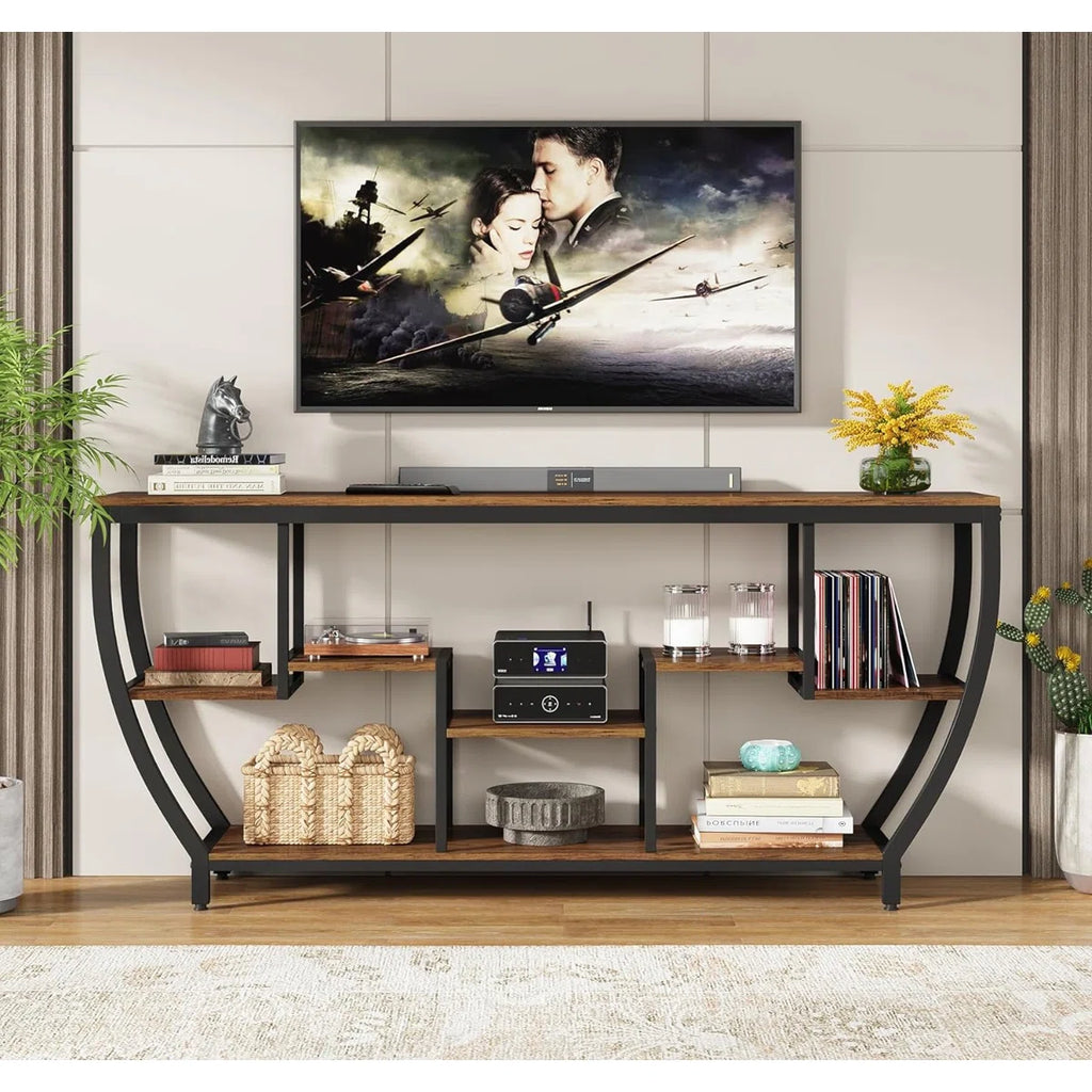 Bring industrial elegance into your home with this multi-shelf console table, designed to blend seamlessly with modern, rustic, or urban interior styles. Featuring a matte black iron frame paired with rich rustic wood shelving, this table adds warmth and character to any space — from hallways and foyers to living rooms and entryways.