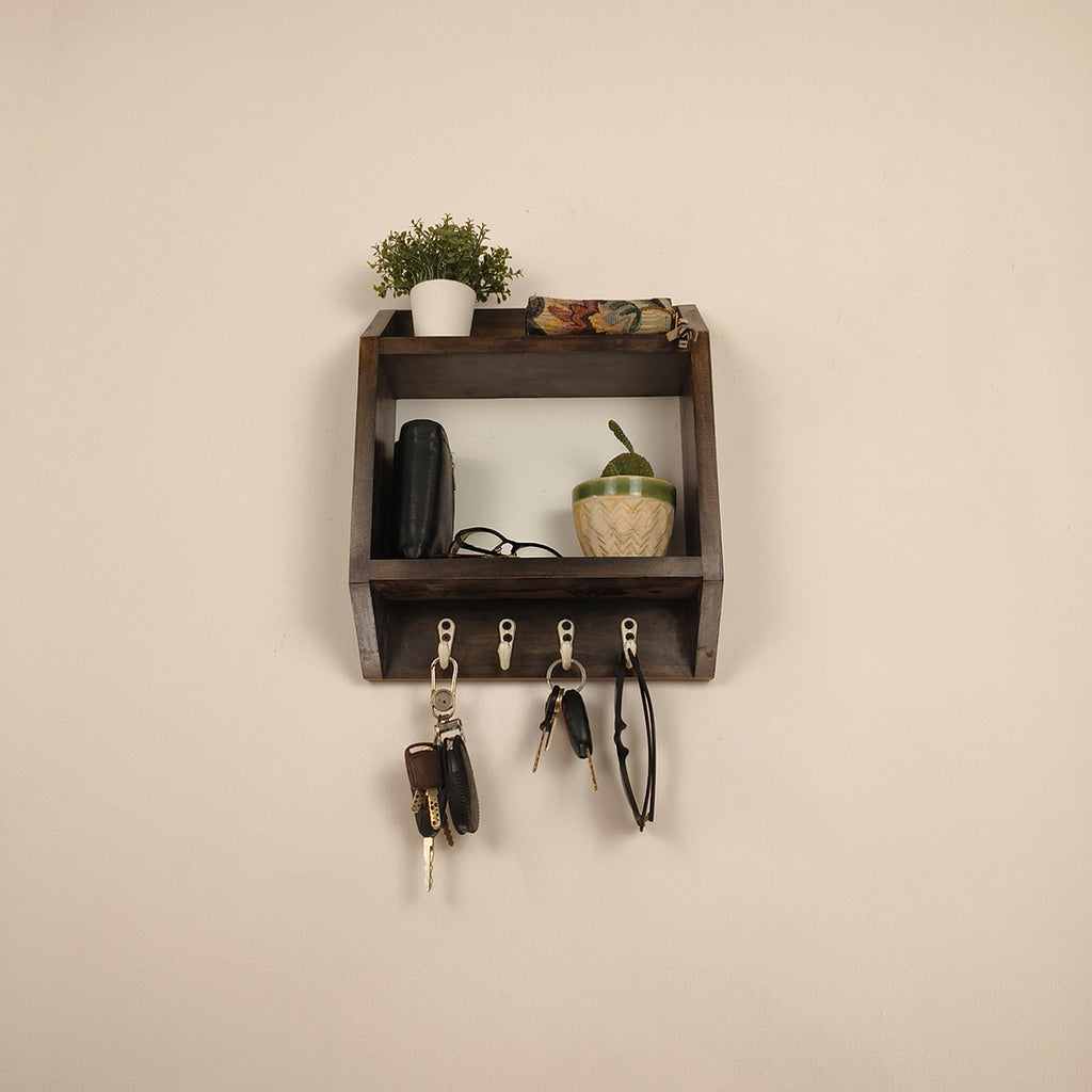 Organize your home with style using the Kingston Wooden Wall Shelf Organiser with Key Holders. Made from high-quality wood, this versatile wall décor piece provides a convenient space to hang keys, store essentials, and display decorative items, adding both functionality and elegance to any room.