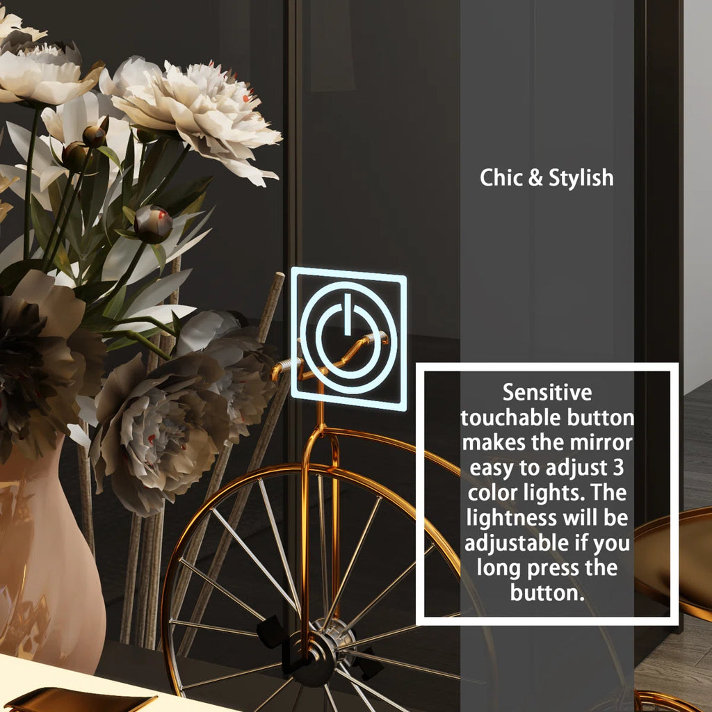 LED Lighted Makeup Vanity with Touch Screen Mirror & 5 Drawers – Modern Wooden Dressing Table with Stool