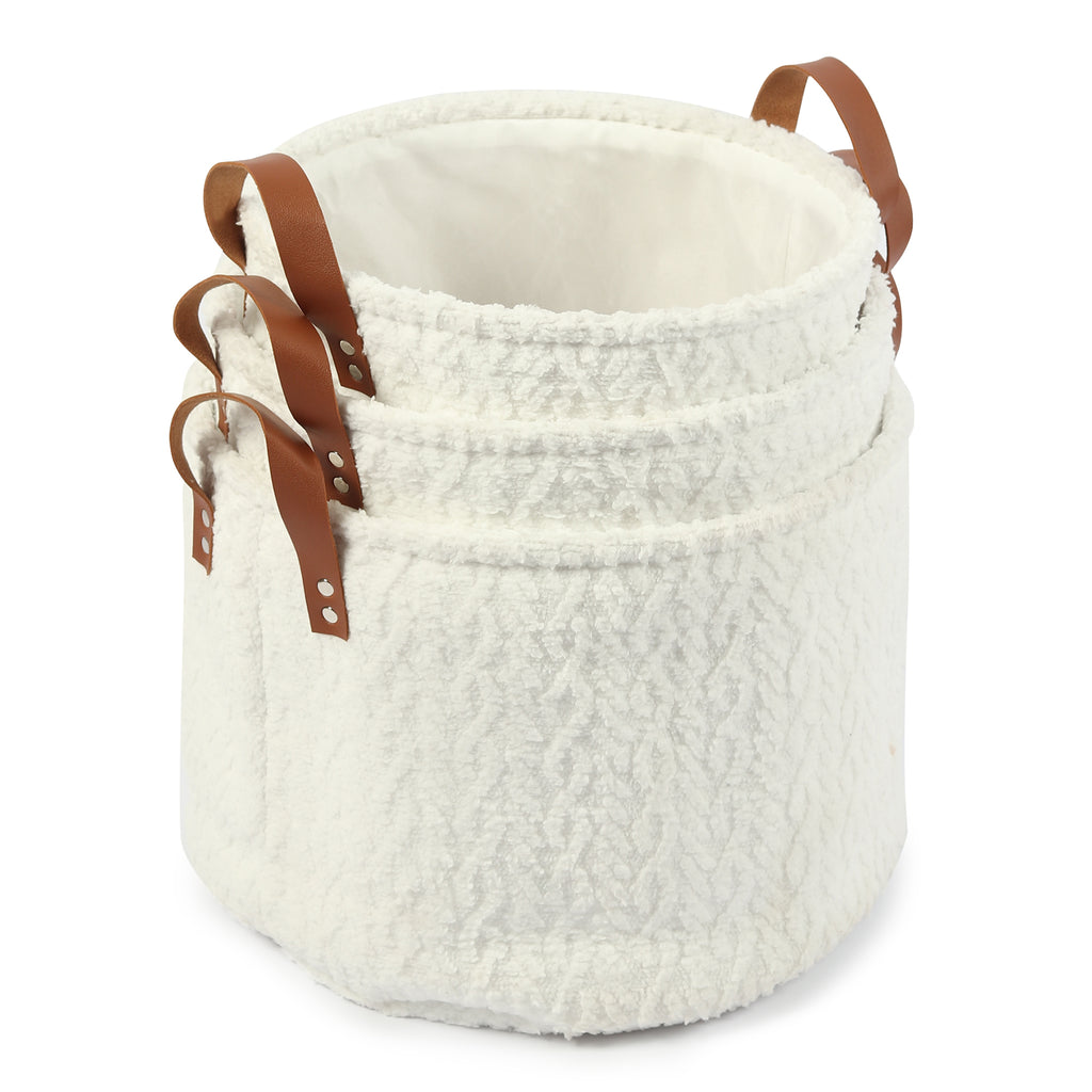 Cloud Weave Fabric Basket Soft Grey Set of 3