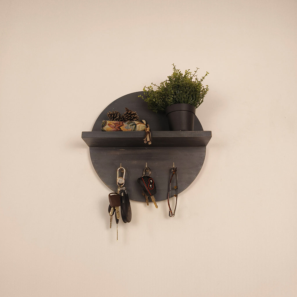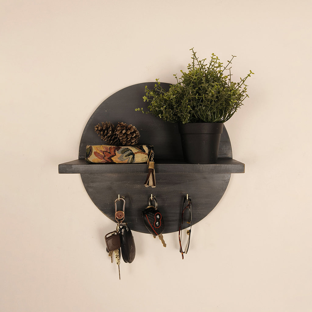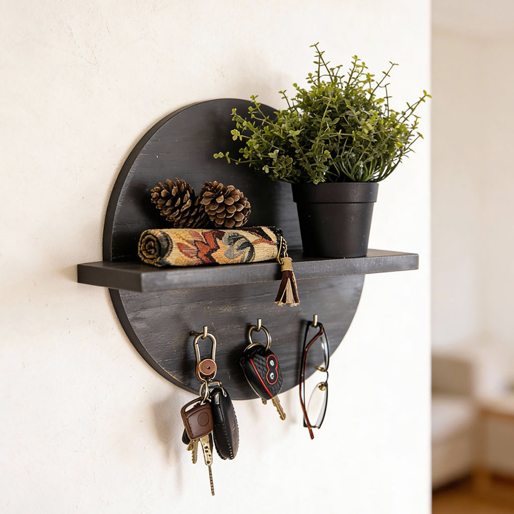 Lotus Wooden Wall Shelf Organiser with Key Holders