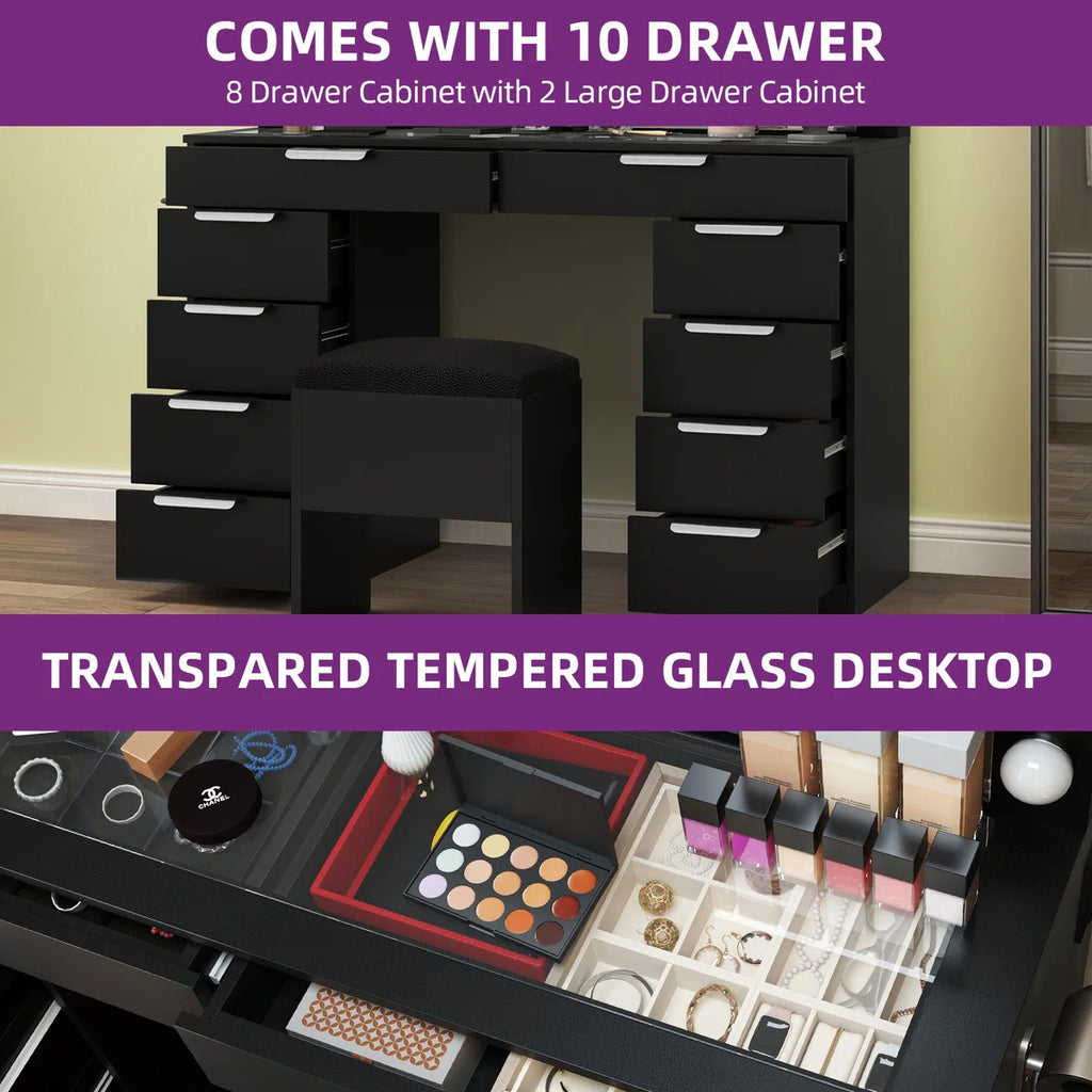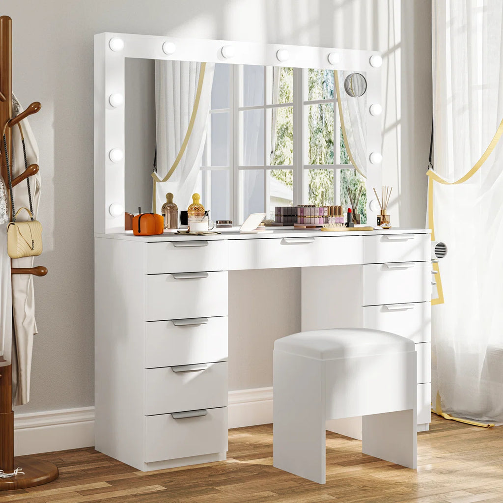 LED Makeup Vanity Desk with 3 Brightness Levels for Bedroom or Dressing Room