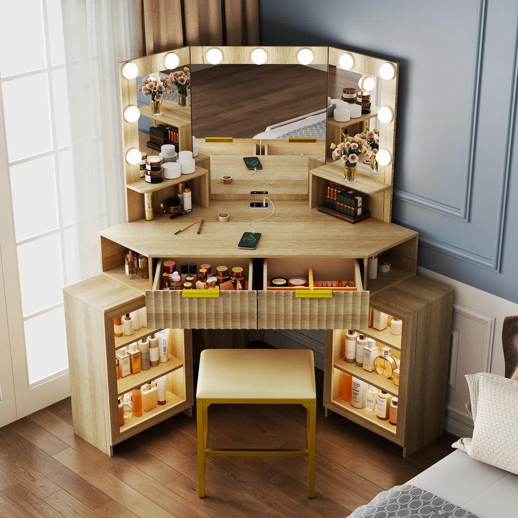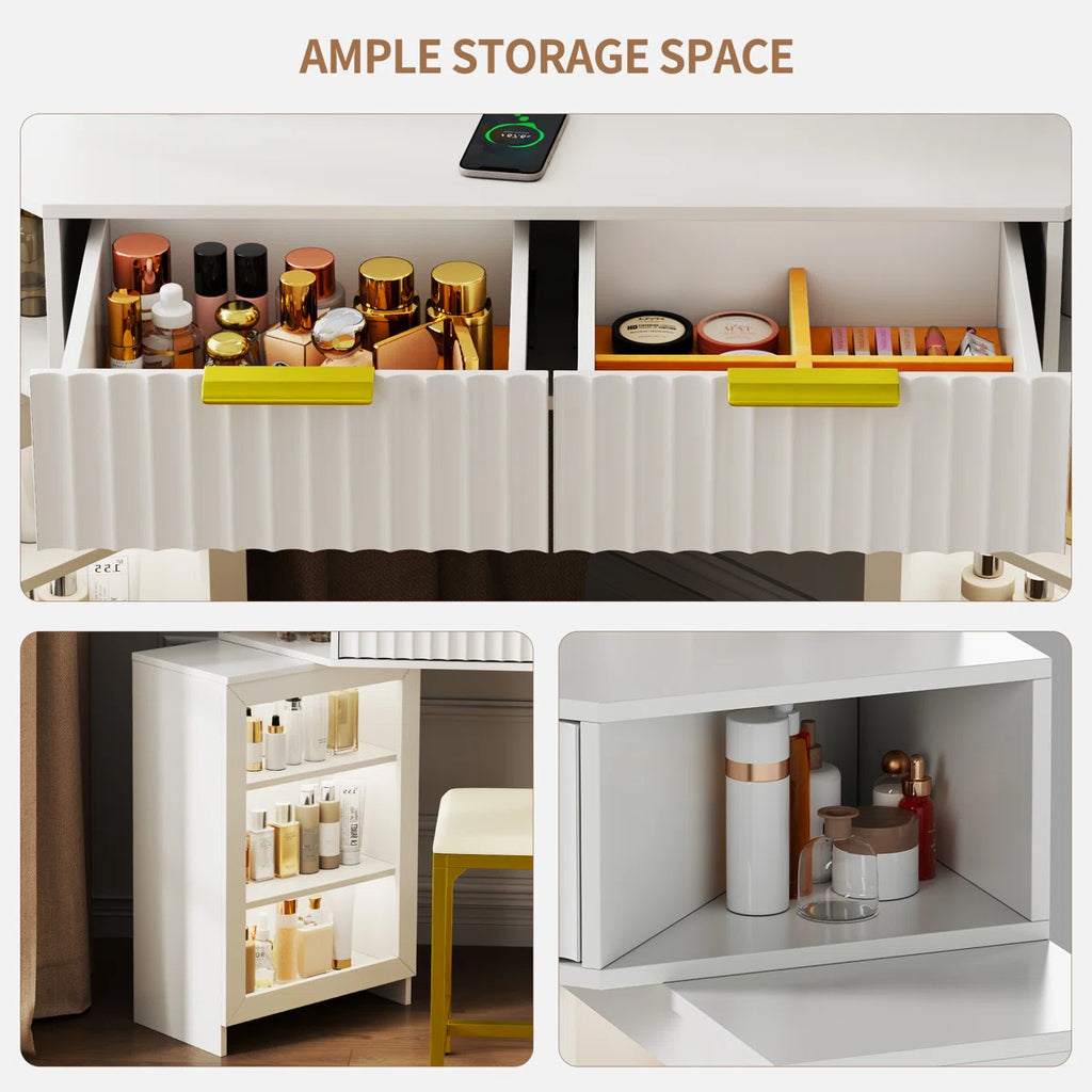 Makeup Vanity with Motion-Activated LED Mirror and Sensor Module