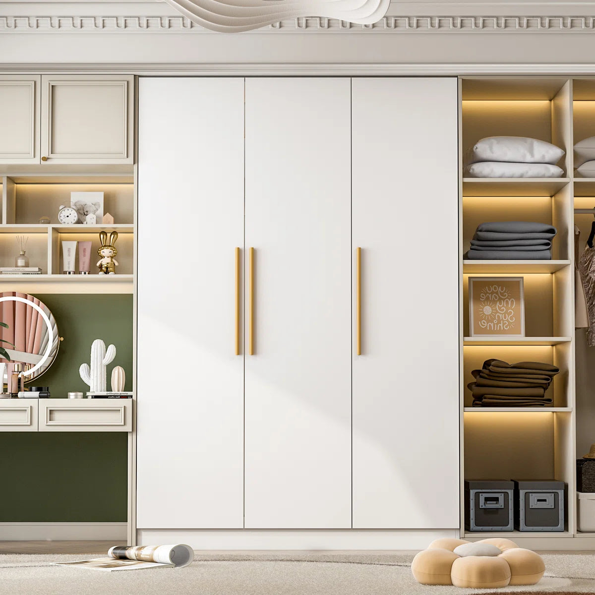 Myleisha 3-Door Armoire 70 Inch H Spacious Bedroom Wardrobe