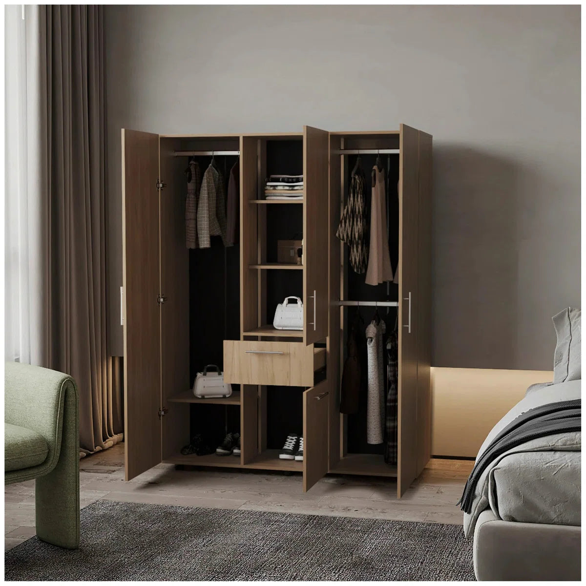 Natural Oak Armoire – Multi-Storage Wardrobe with One Drawer