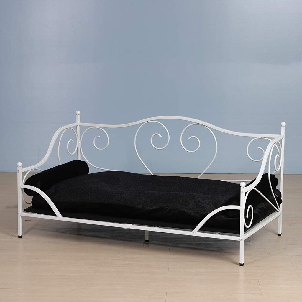 Pet Sofa Bed, Metal Frame Dog Bed Couch with Washable Plush Cushion for Medium Pet Sitting