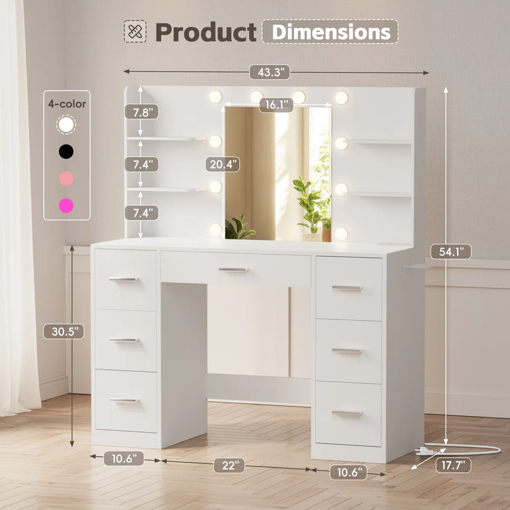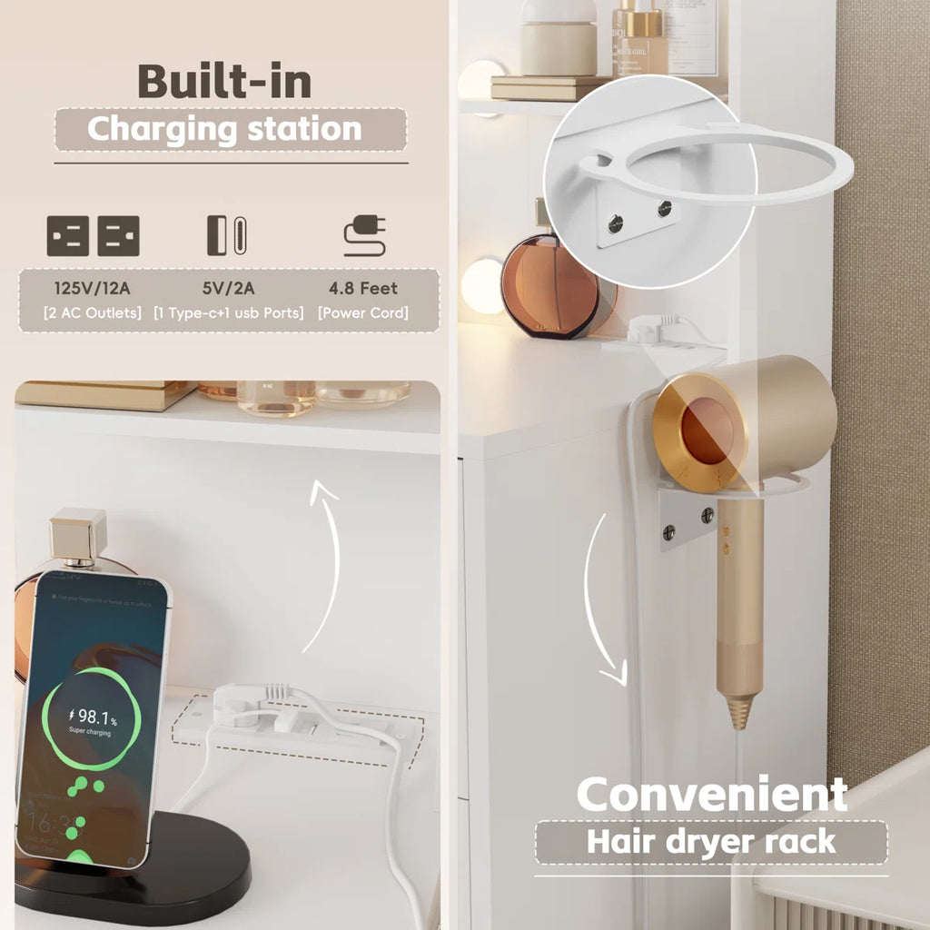 Ragin Vanity Desk with 3-Mode LED Mirror Lights and Built-In USB Charging Station