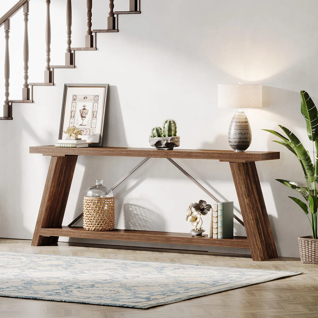 Rustic Brown Console Table – Traditional Wooden Entryway Sofa Table with Shelf Storage