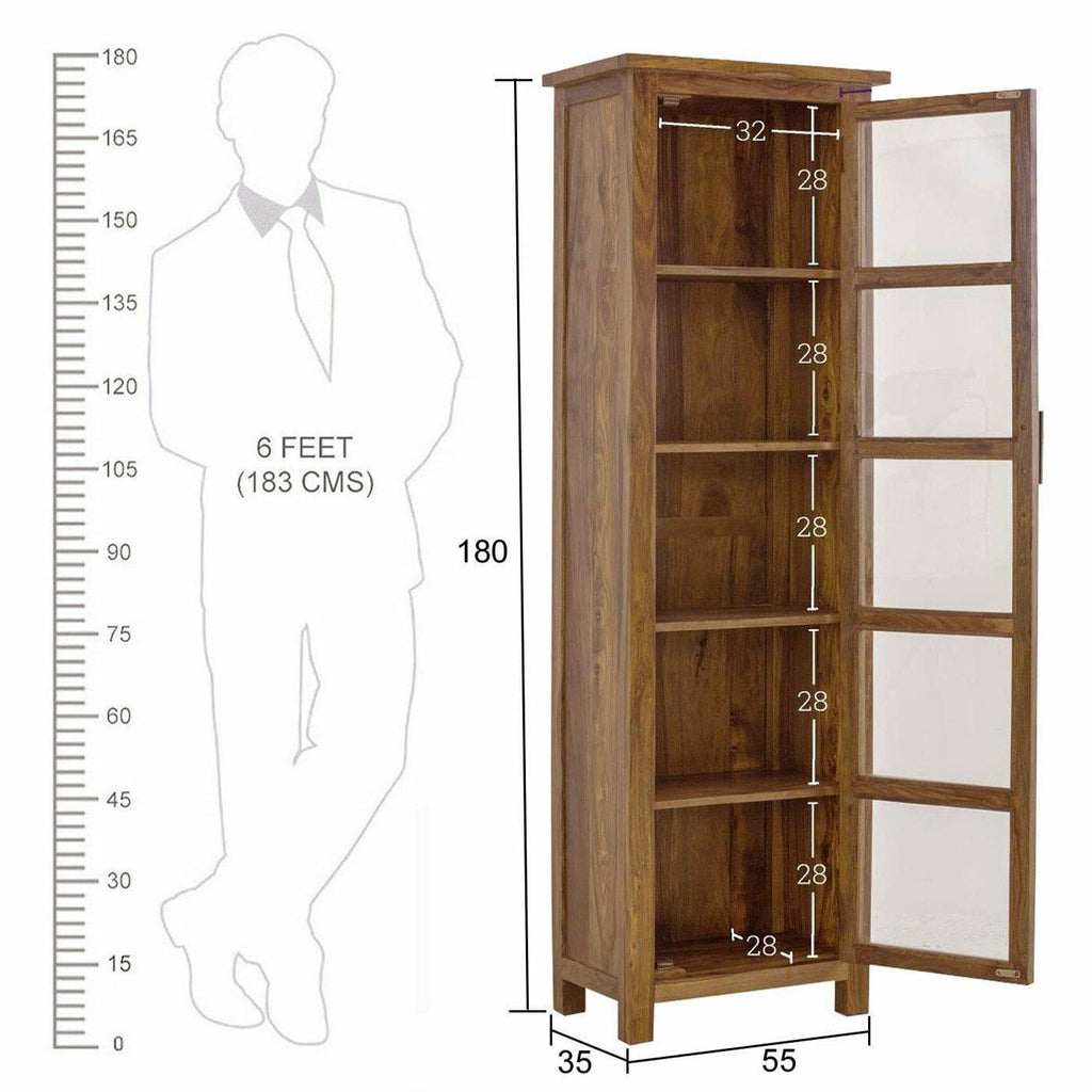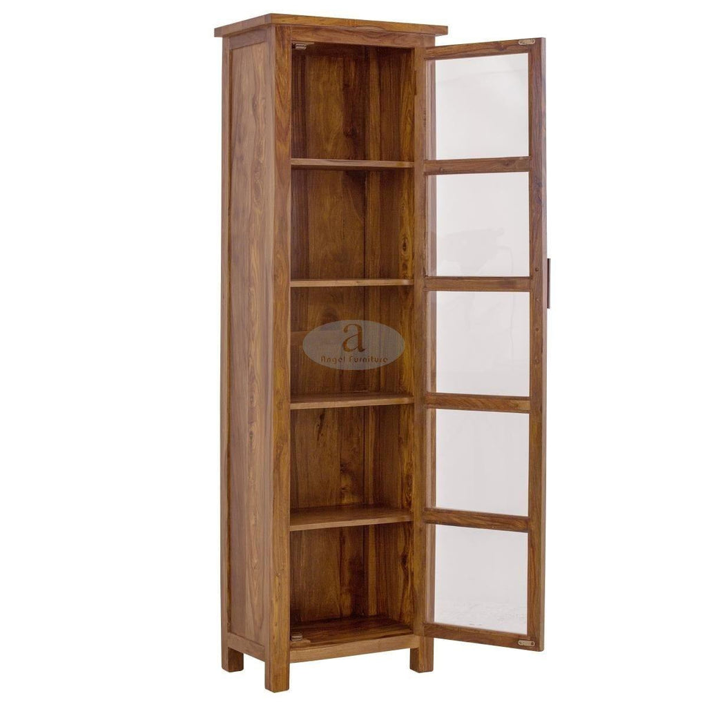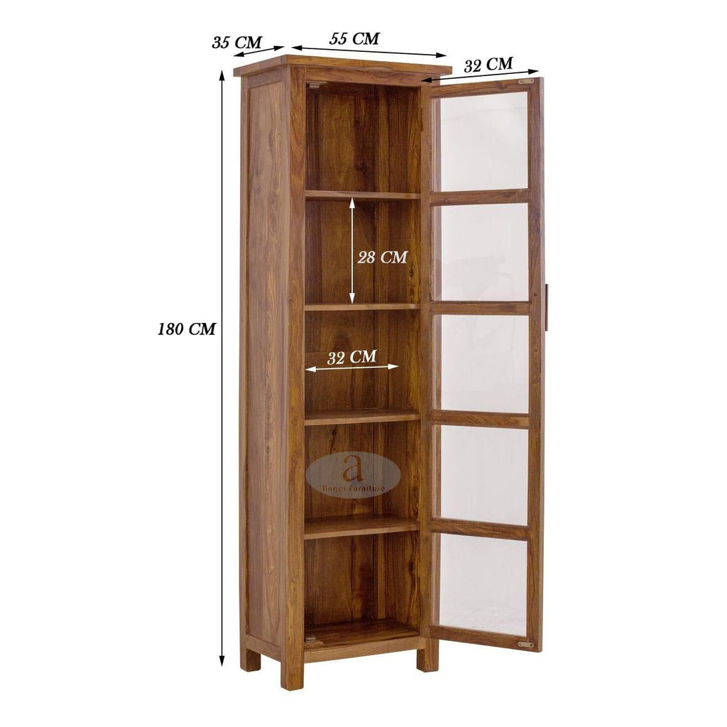Sheesham Wood Single Door Crockery Cabinet Tall In Honey Finish