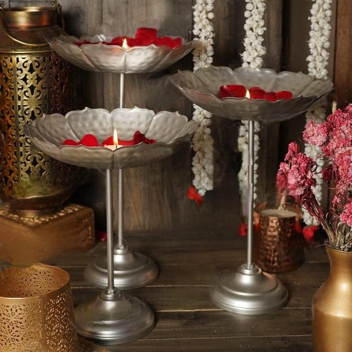 Aureus Tall Silver Pillar Candle Stand- OUCH ACRT