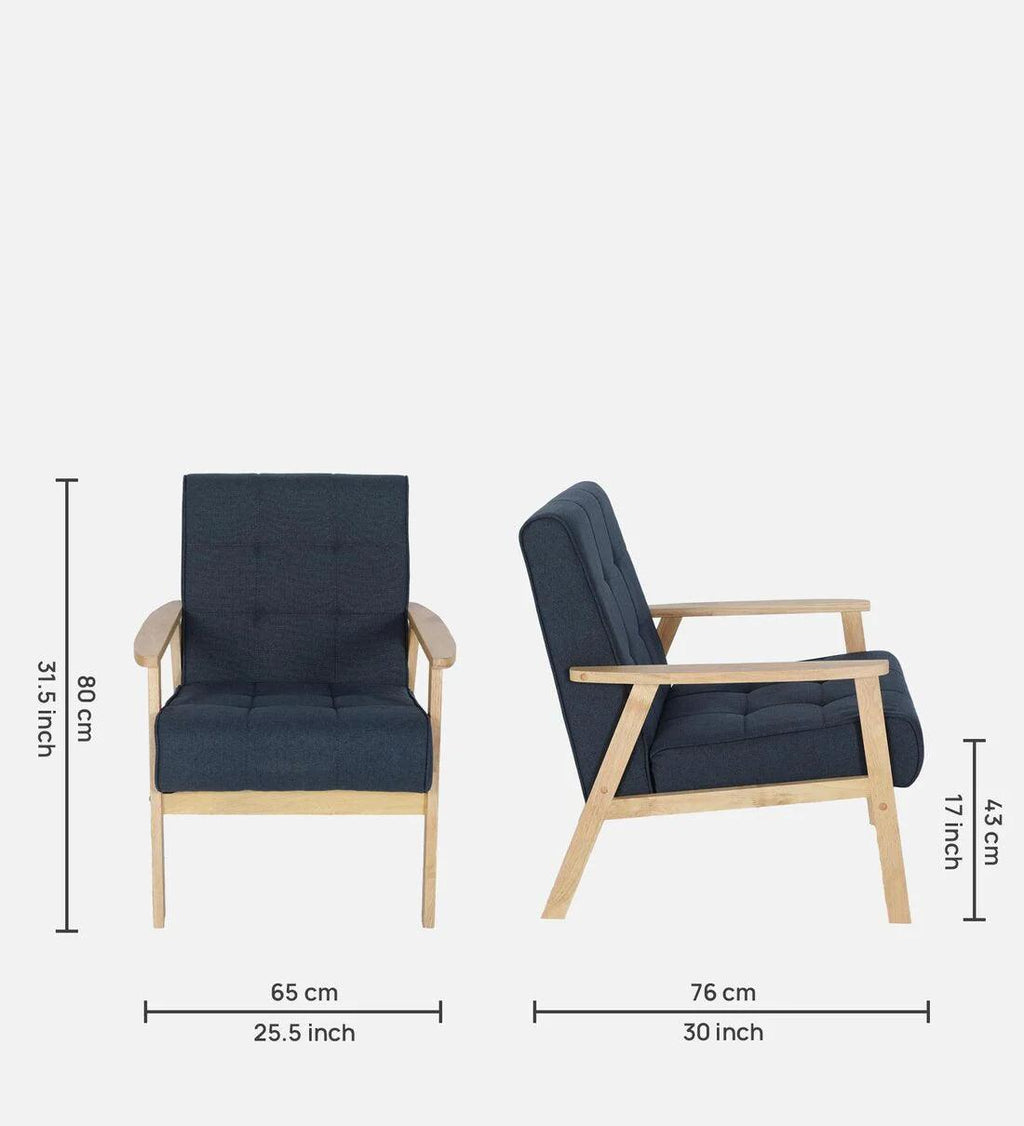 Solid Wood 1 Seater Sofa in Natural & Navy Finish