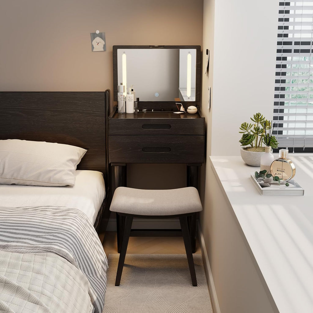 Add functionality and elegance to your space with this modern black vanity stool—crafted with comfort and durability in mind. Whether you're getting ready at your makeup desk, studying, or simply need a compact seating option, this stool fits the bill perfectly. Please note, the vanity desk shown is for display purposes only and is not included.