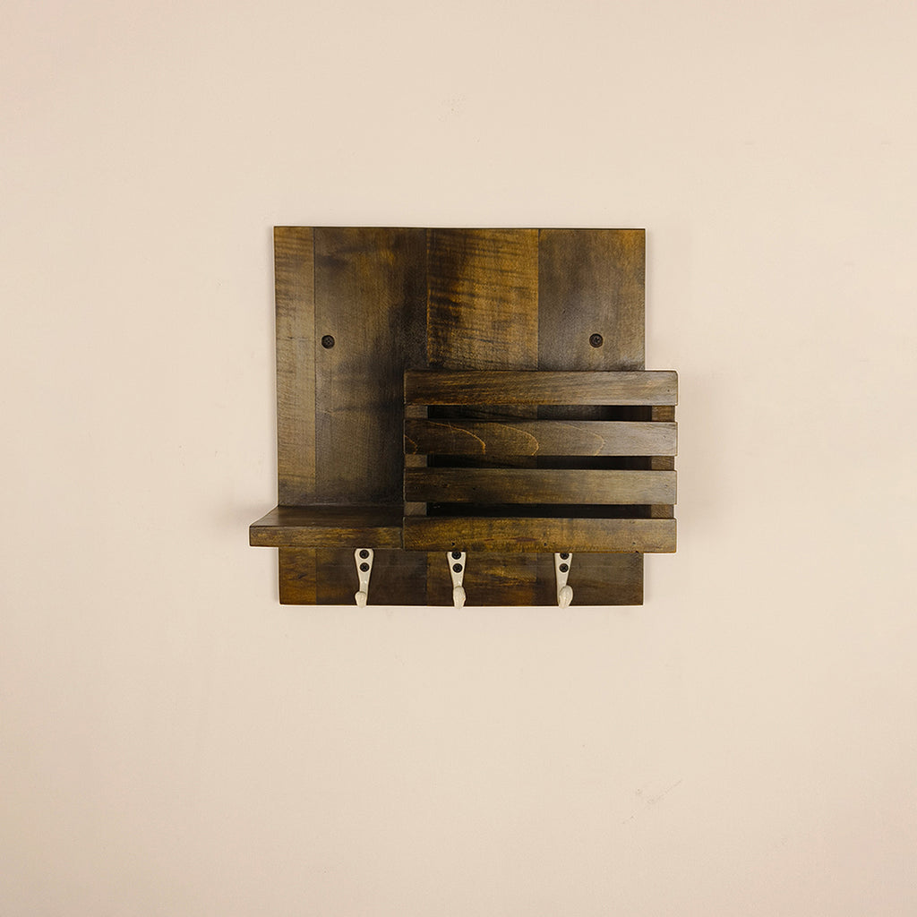 Keep your home organized in style with the Somerset Wooden Wall Shelf Organiser with Key Holders. Made from high-quality wood, it provides a perfect spot for keys, small essentials, and decorative items, adding both functionality and charm to any wall.