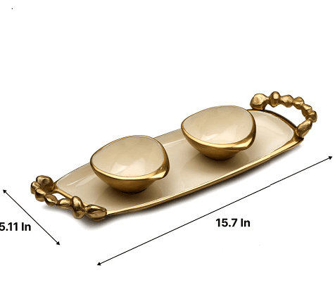 Stones Serving ware Ivory enamle - Tray & Bowls Set Gold