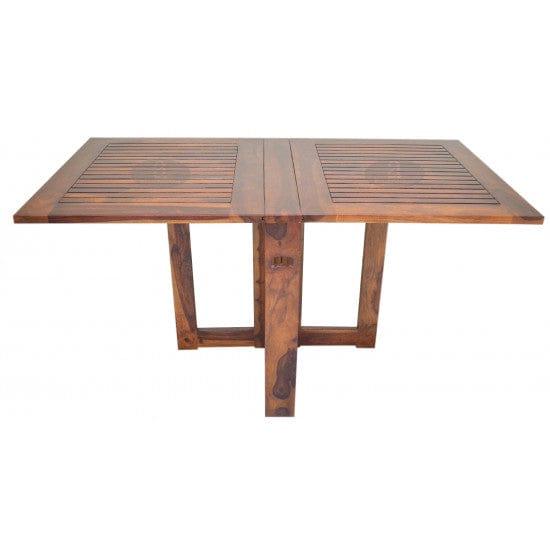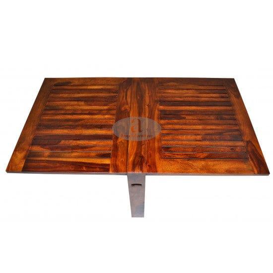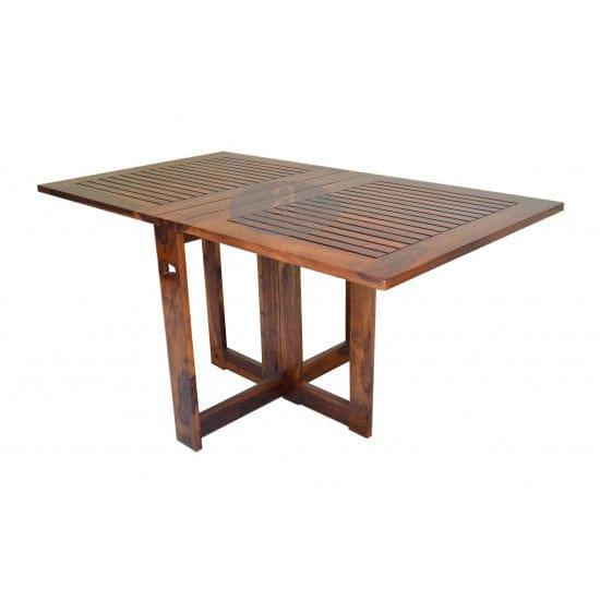 Transform your dining area with this exquisite dining set, influenced by ethnic art and literature. The set features a honey-finished Sheesham wood table and chairs, blending traditional design with modern functionality. The table, measuring W 62 x D 39 x H 30 inches, is foldable for convenient storage, while the chairs, with dimensions W 18 x D 18 x H 39 inches, feature a stylish stripped design. This set comfortably seats four and is delivered pre-assembled for immediate use, with the exception of the bench, which requires DIY assembly.