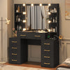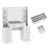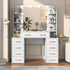 Tempered Glass Vanity Desk with LED Lights, Mirror, and Built-In Charging Station