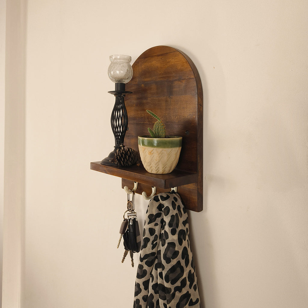Valencia Wooden Wall Shelf Organiser with Key Holders