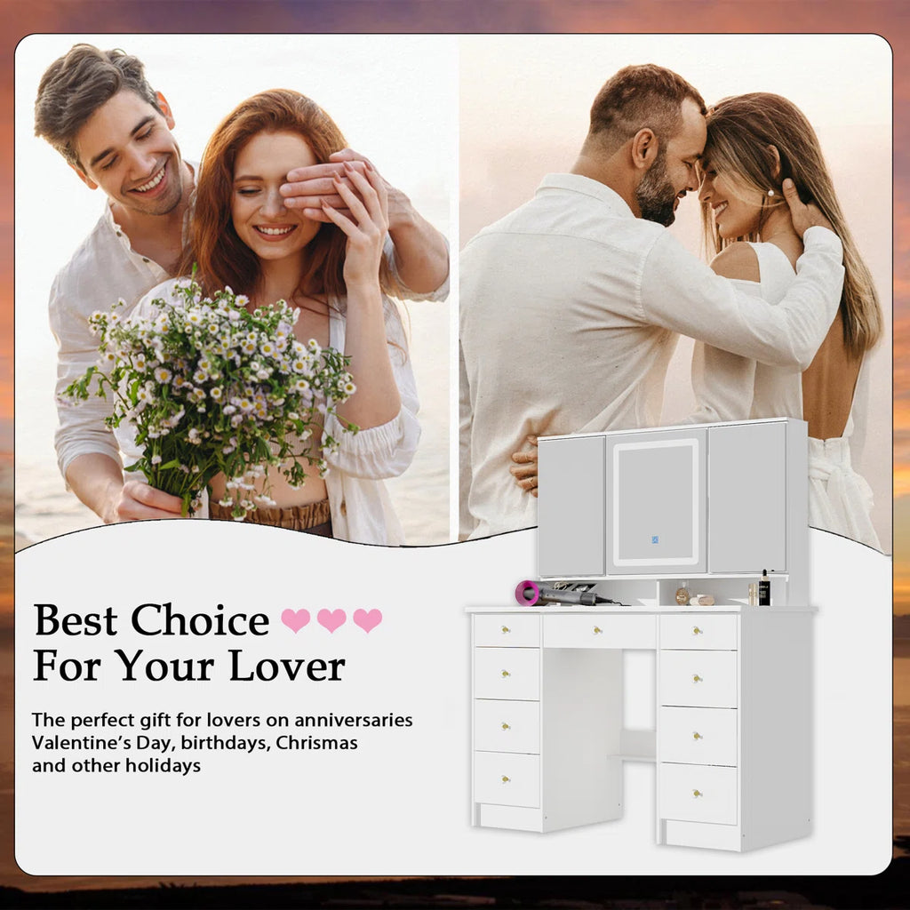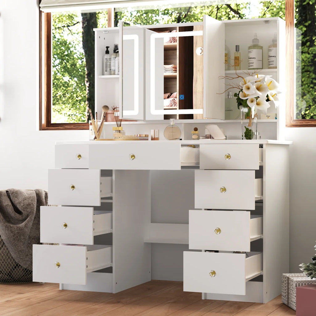 Luxury Makeup Vanity Desk with LED Lights and Storage