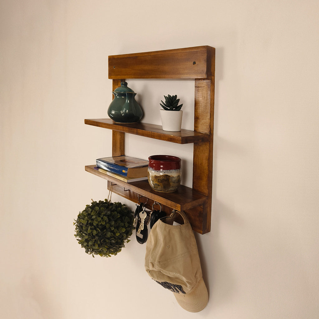 Enhance your home’s organization and style with the Verona Wooden Wall Shelf Organiser with Key Holders. Made from high-quality wood, this elegant wall décor piece offers a convenient space to hang keys, store essentials, and display decorative items, adding charm and functionality to any room.