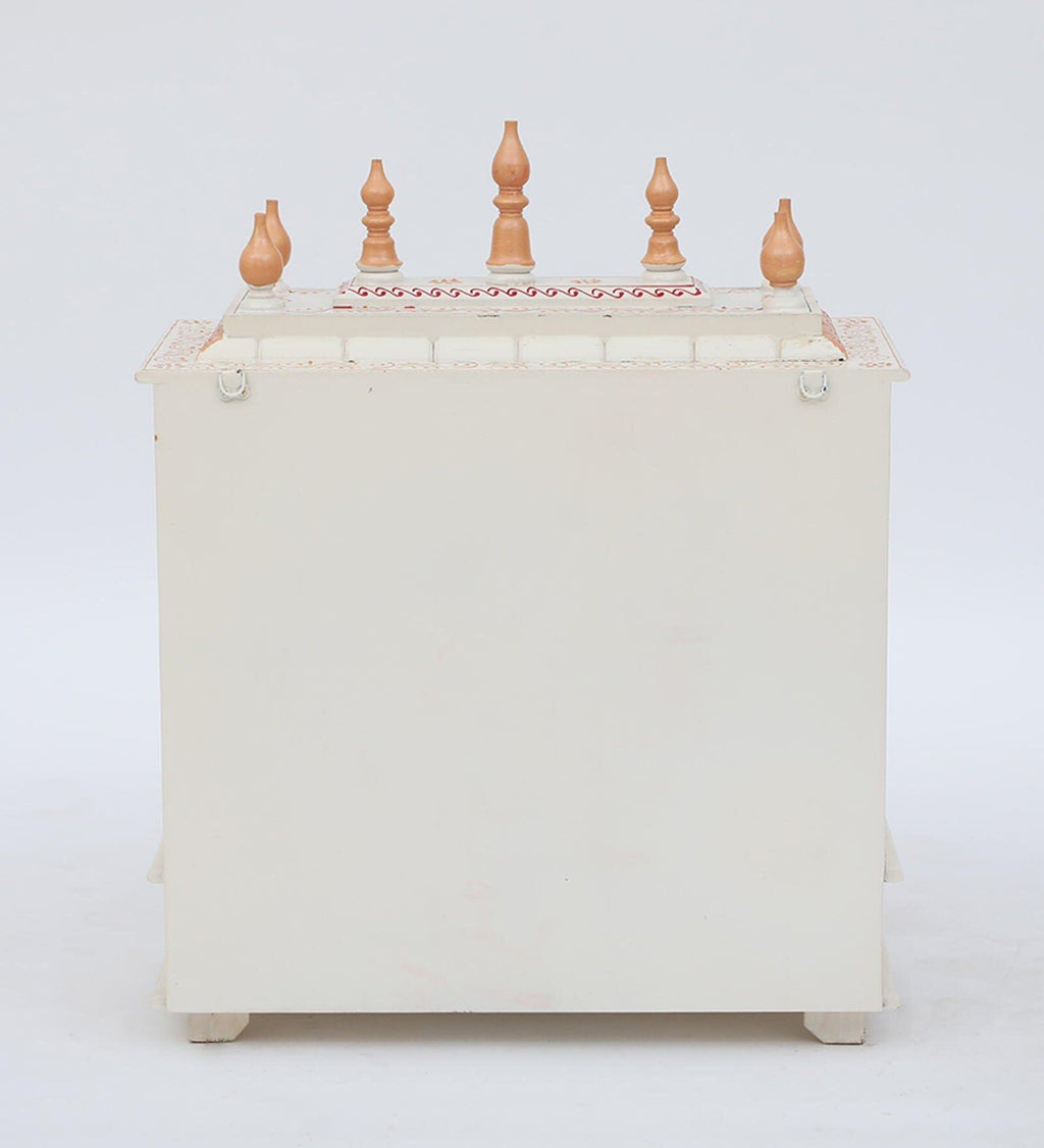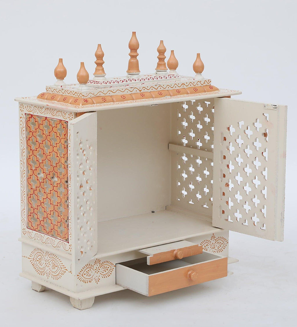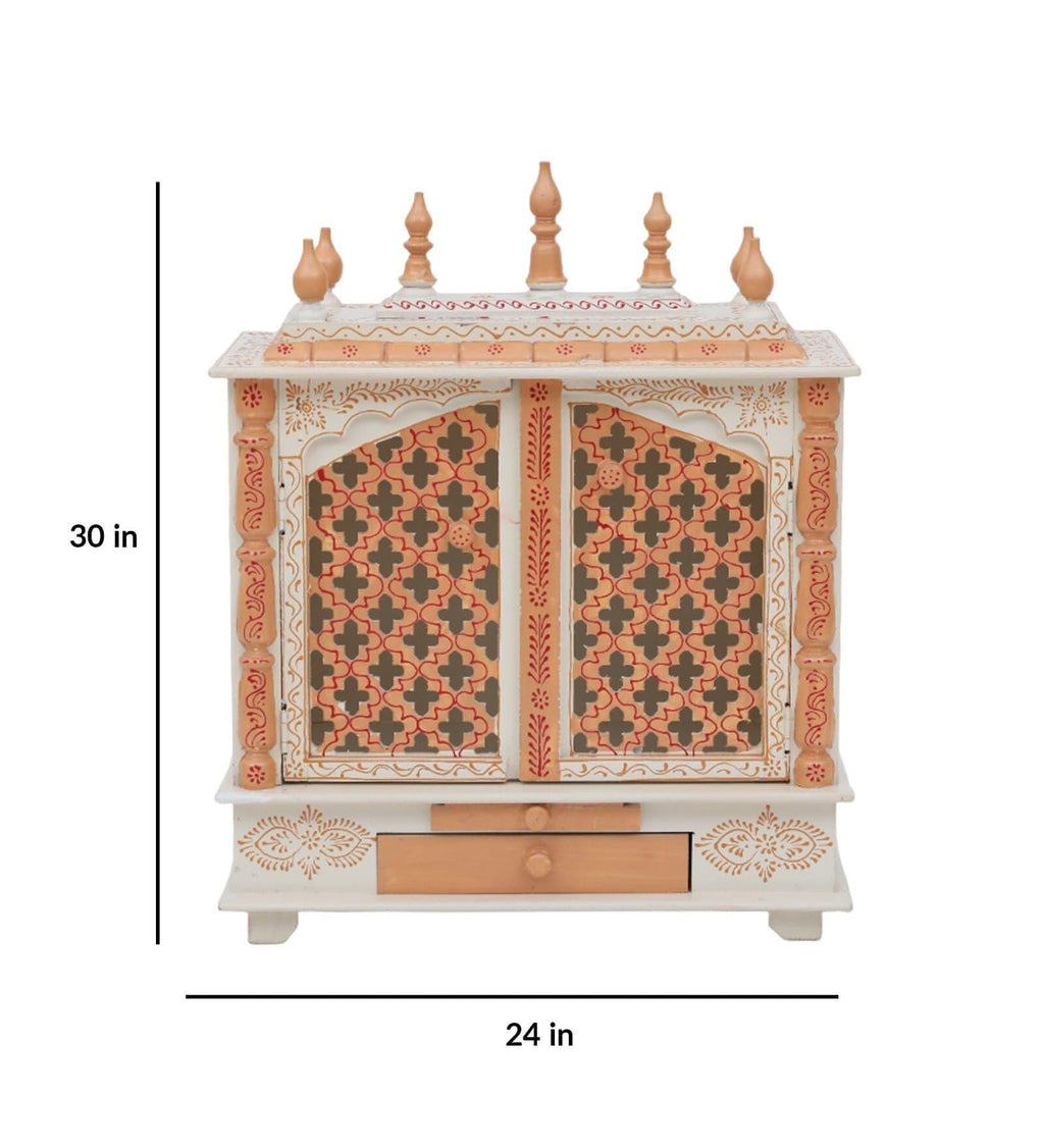 White And Gold Mango Wood & MDF Pooja Mandir With Door,
